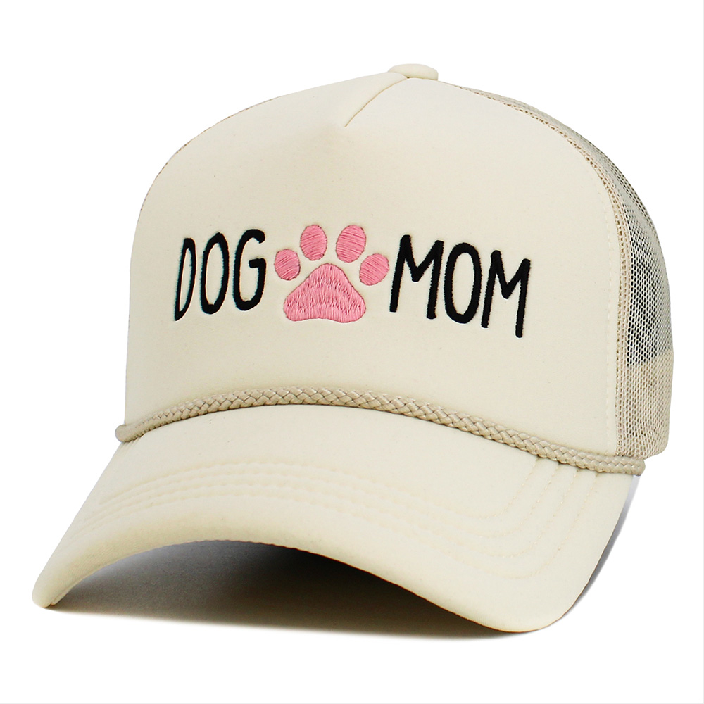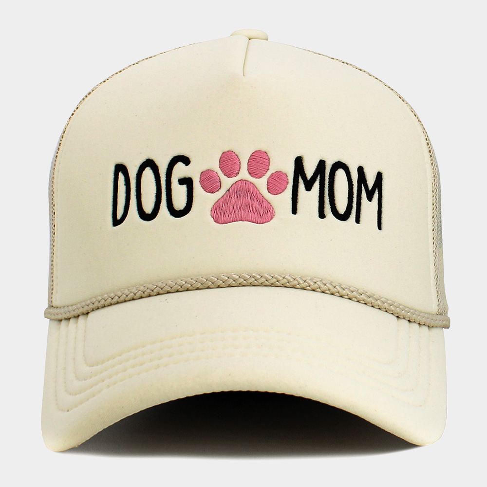 DOG MOM Message Paw Embroidered Mesh Back Trucker Hat
