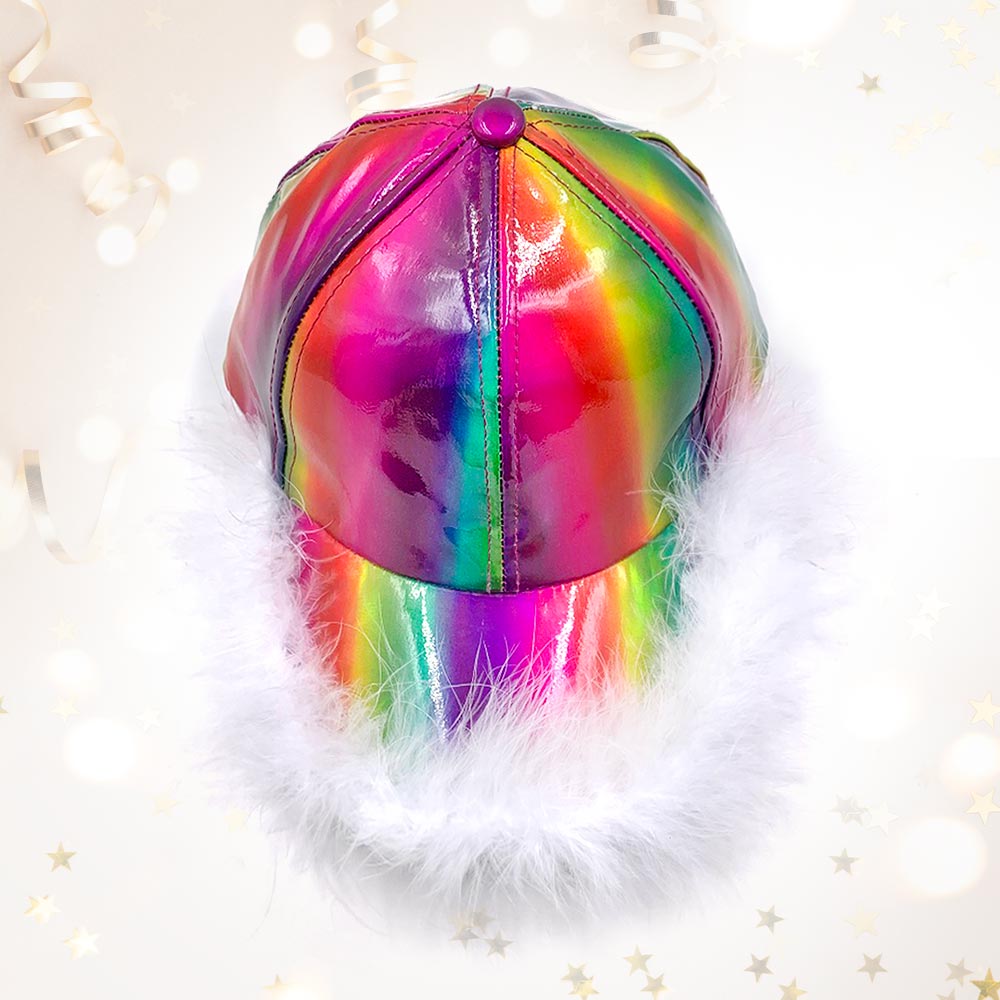 Faux Feather Trimmed Hologram Baseball Cap