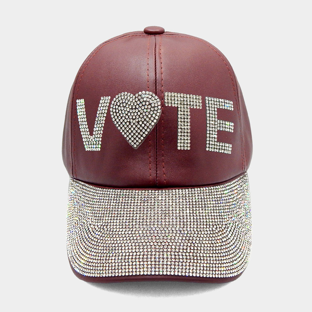 Faux Leather Vote Message Rhinestone Embellished Baseball Cap