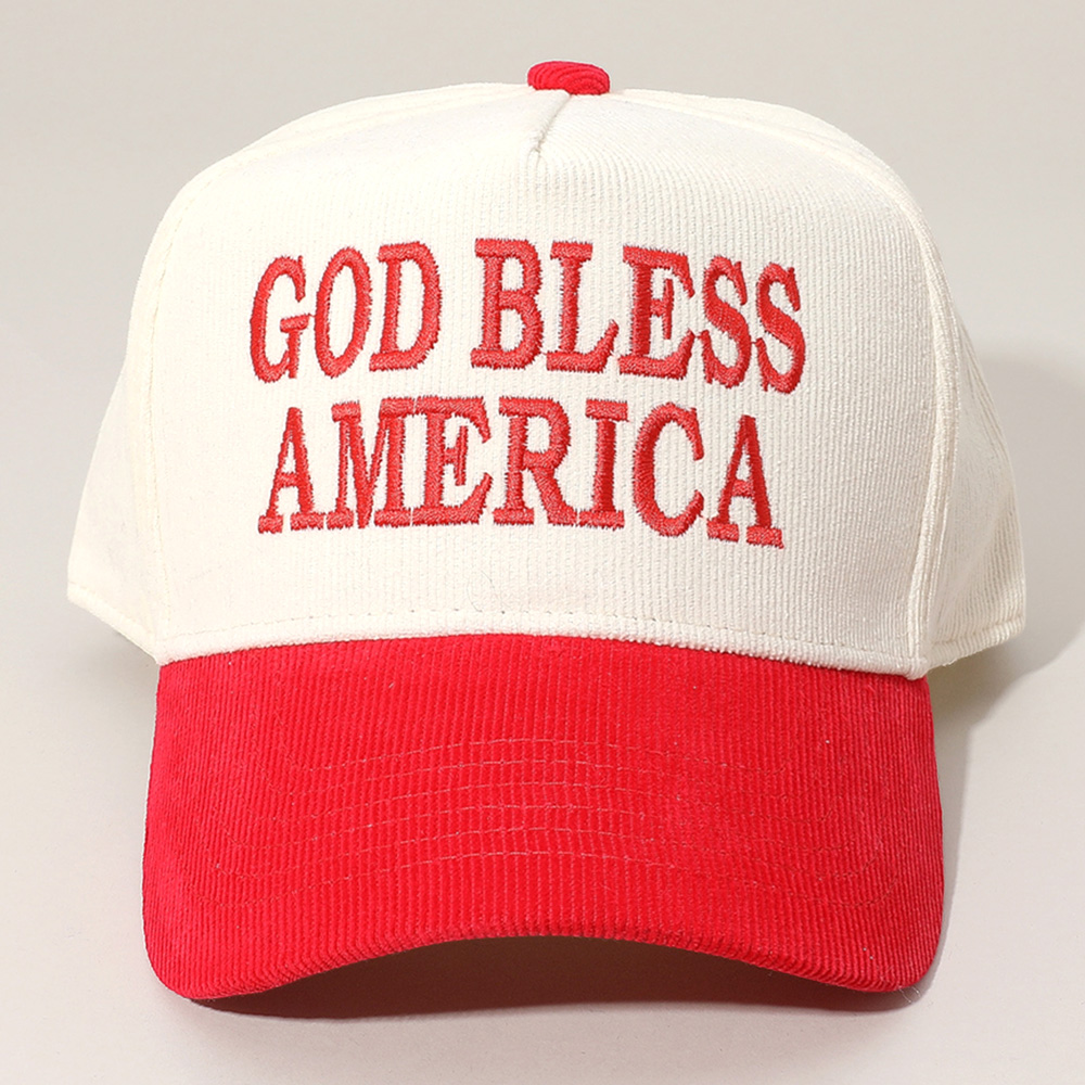 GOD BLESS AMERICA Message Embroidered Corduroy Baseball Cap