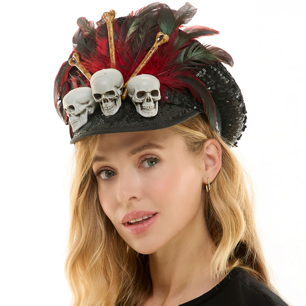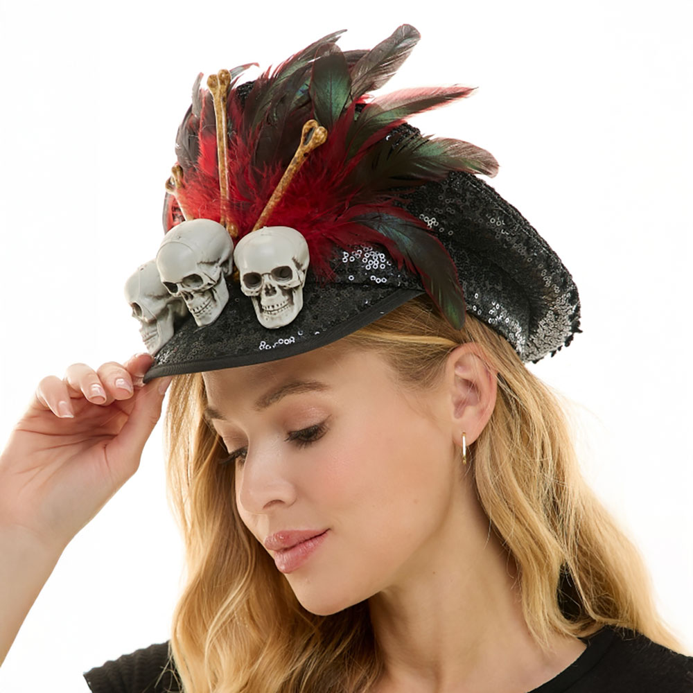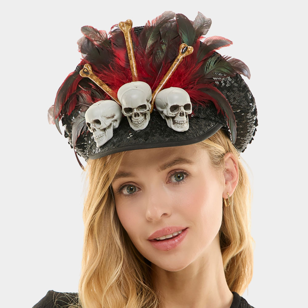 Gothic Skull Bone Feather Embellished Halloween Costume Hat