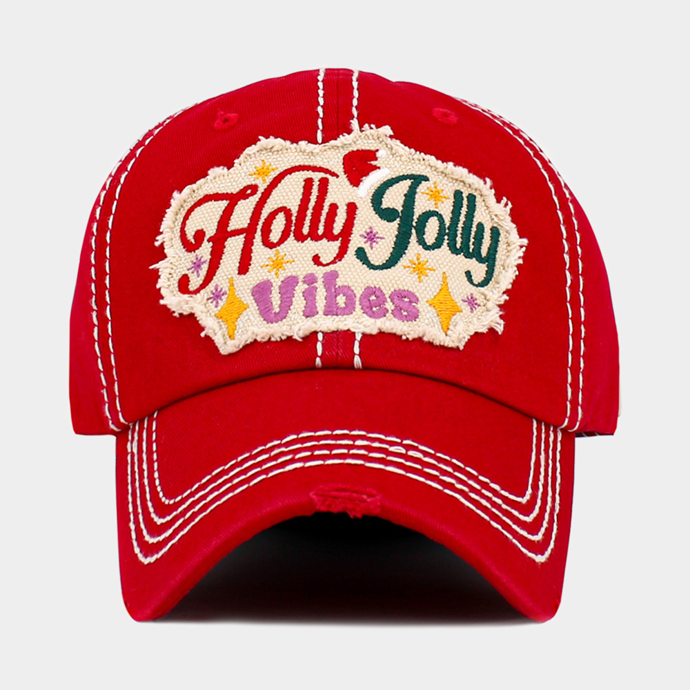 HOLLY JOLLY Vibes Message Embroidered Christmas Vintage Baseball Cap