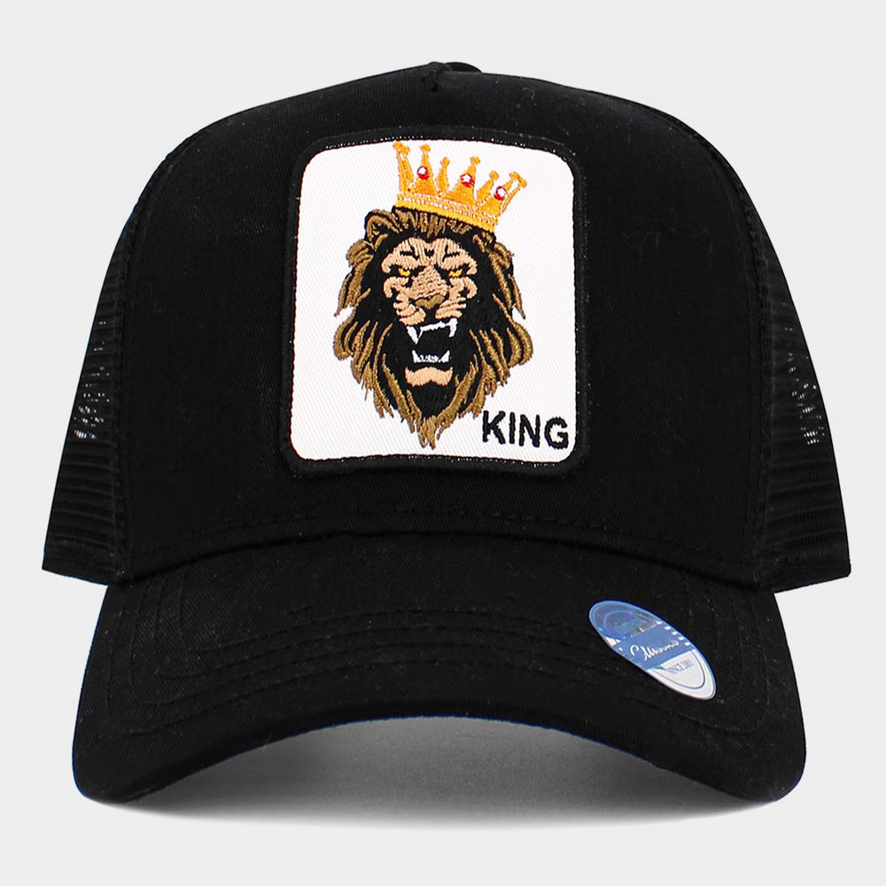 King Lion Embroidered Patch Mesh Back Trucker Hat