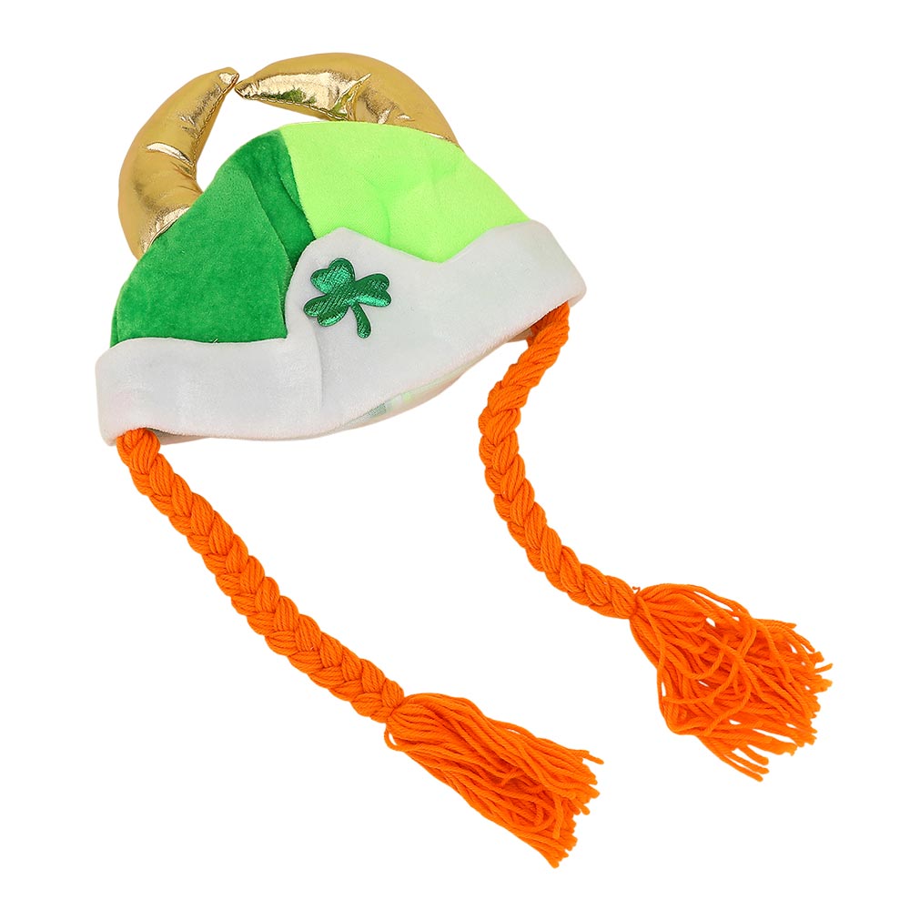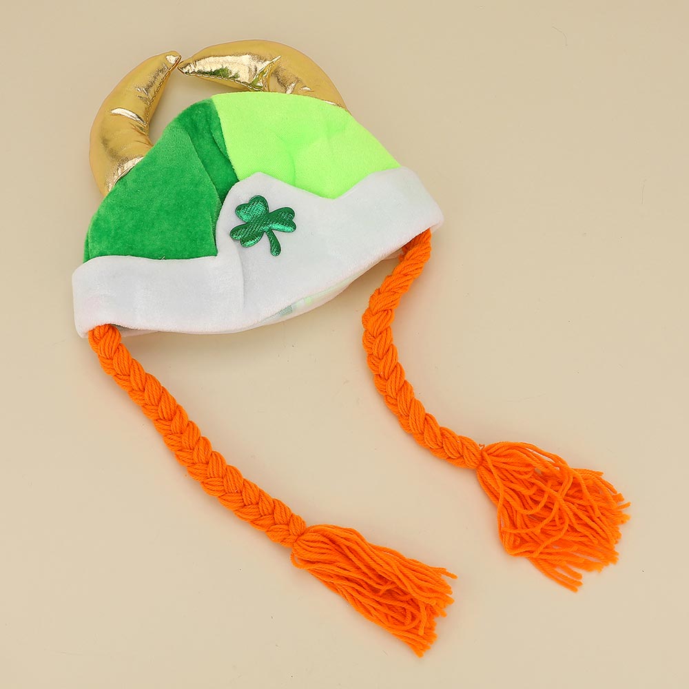 Details • Size : 9" H, 23" D • Braided Hair Size : 12" L • Playful leprechaun costume hat featuring a shamrock accent and long braided beard detail for a fun, festive look. Perfect for St. Patrick’s Day parties, parades, bar events, and themed celebrations, this novelty hat adds humor, personality, and standout appeal to any holiday outfit.