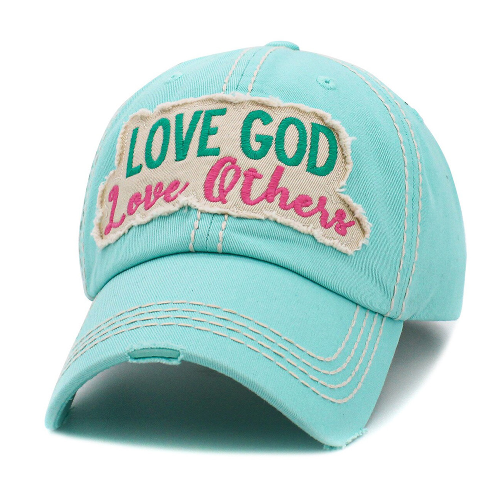Details • Crown Circumference : 23" (Adjustable) • Crown Height : 4.5" • Brim Height : 3" • Material : 100% Cotton • Show faith and kindness with this distressed baseball cap featuring the inspirational phrase “Love God Love Others.” Stylish with contrast stitching and a comfortable fit, it’s the perfect everyday accessory to spread positivity and encouragement.
