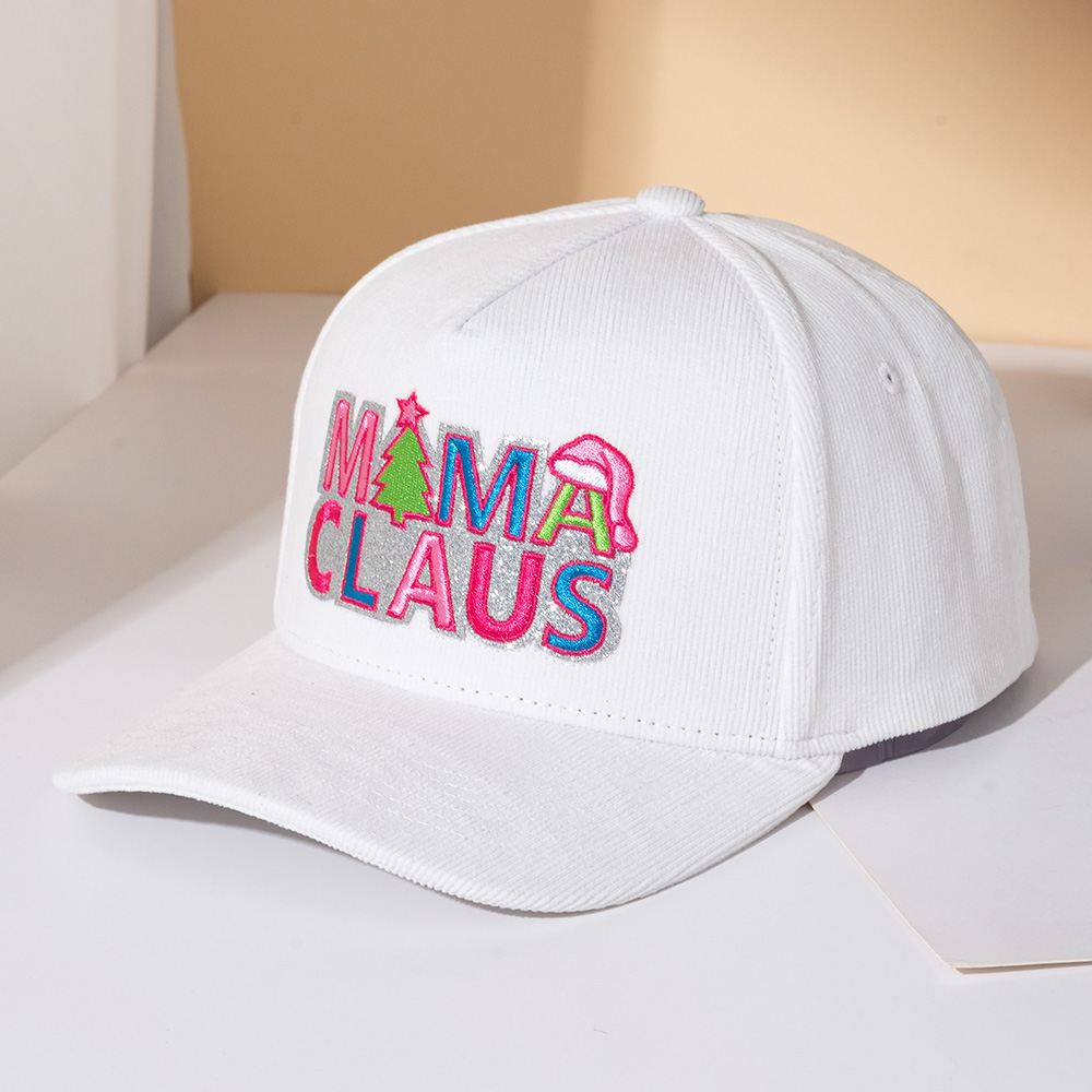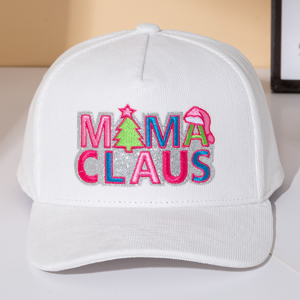 MAMA CLAUS Message Embroidered Corduroy Baseball Cap