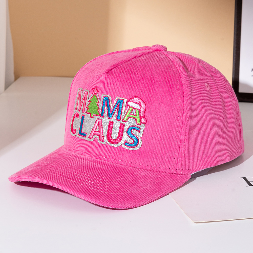 MAMA CLAUS Message Embroidered Corduroy Baseball Cap