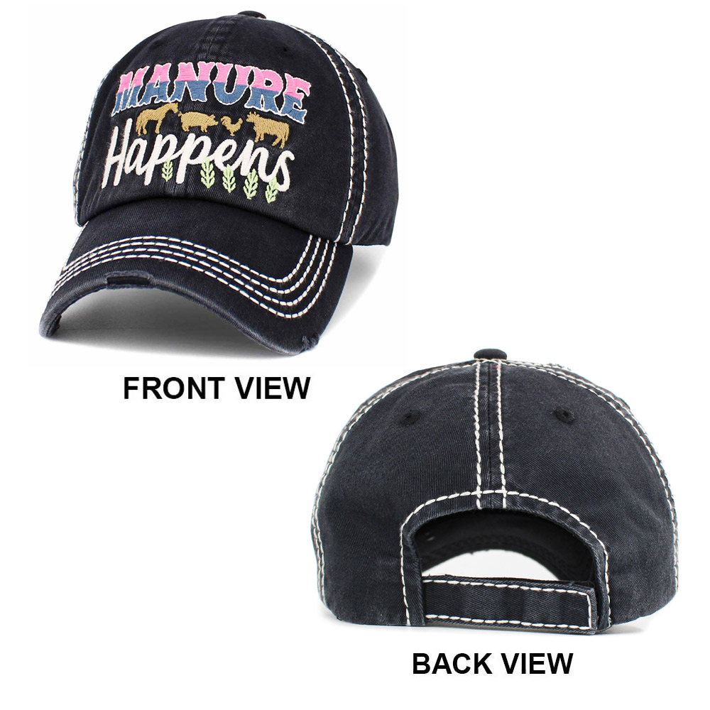 Manure Happens Message Animals Pointed Vintage Baseball Cap