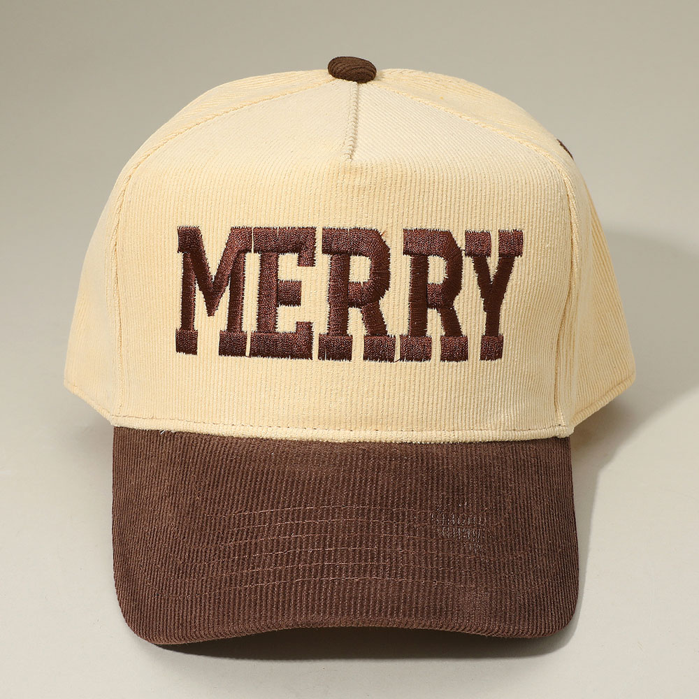 Details • Crown Circumference: 23" • Crown Height : 4.5" • Brim Width : 2.75" • This Corduroy K-Frame 5 Panel Hat is a must-have addition to any hat collection. Made with high-quality corduroy, this 5 panel hat has a sophisticated and stylish look. The sturdy material provides both durability and comfort, making it perfect for everyday wear. Upgrade your headwear game with this classic and versatile corduroy baseball hat. • Add festive charm to your outfit with this MERRY embroidered baseball cap. Its structured design and bold lettering make it a fun and stylish accessory for casual outings, holidays, or gifting occasions.