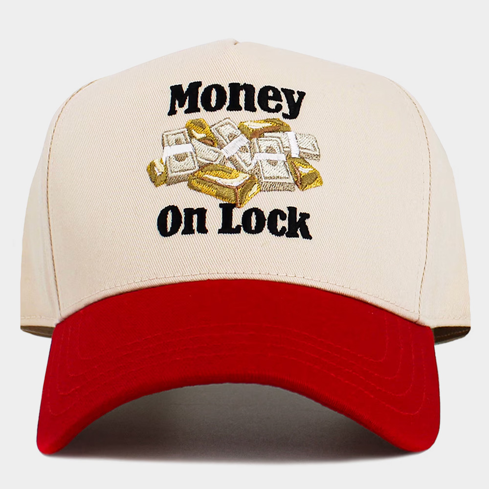 MONEY ON LOCK Message Embroidered Baseball Cap