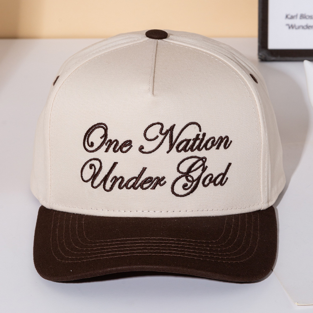 ONE NATION UNDER GOD Message Embroidered Five Panel Canvas Snapback Baseball Cap