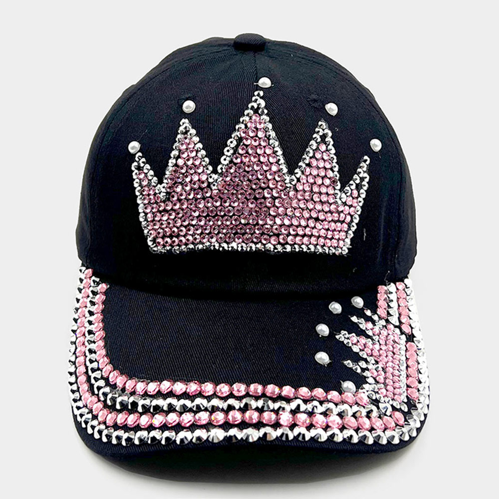 Pearl Embellished Bling Crown Studded Baseball Cap