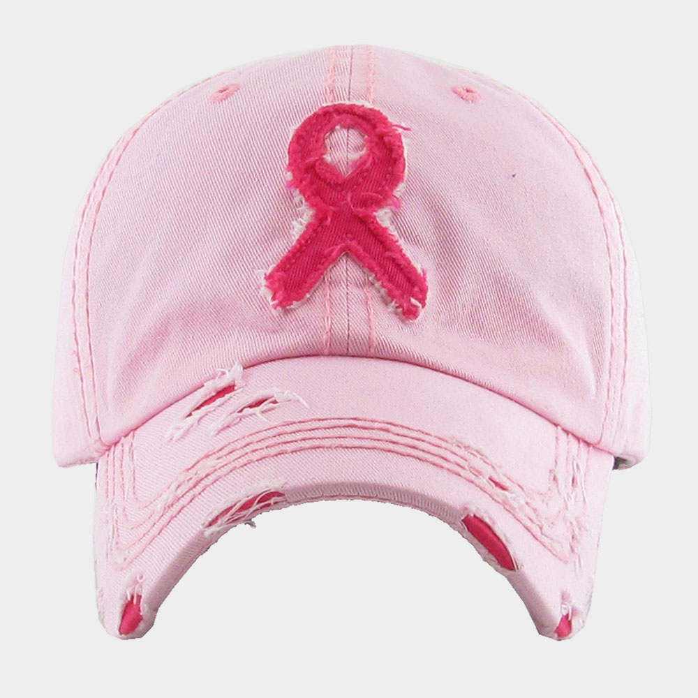 Camouflage Patterned Pink Ribbon Accented Vintage Baseball Cap