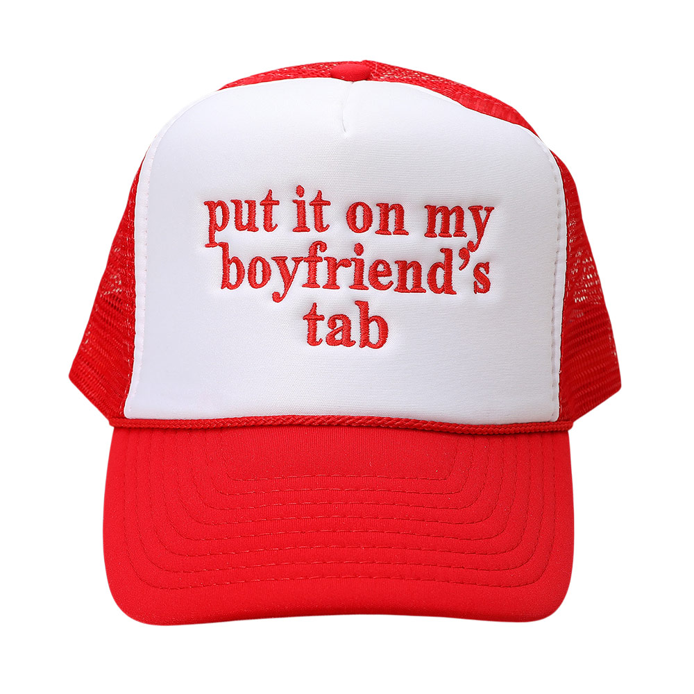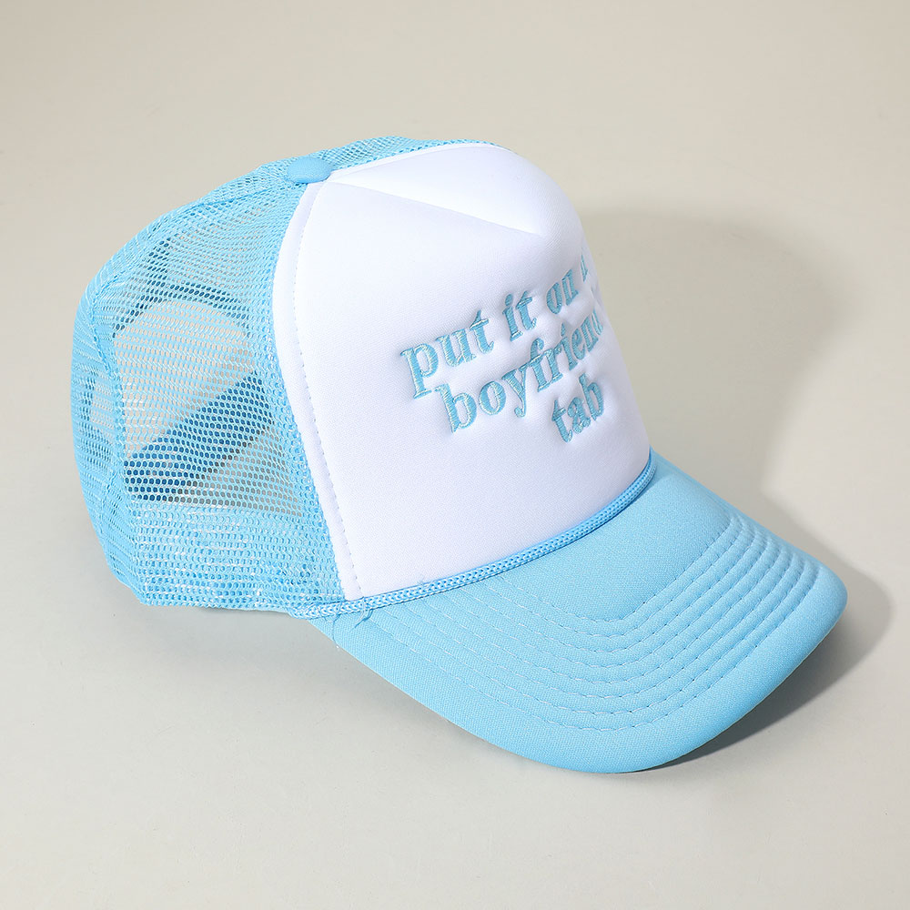 PUT IT ON MY BOYFRIENDS TAB Embroidered Mesh Back Trucker Cap