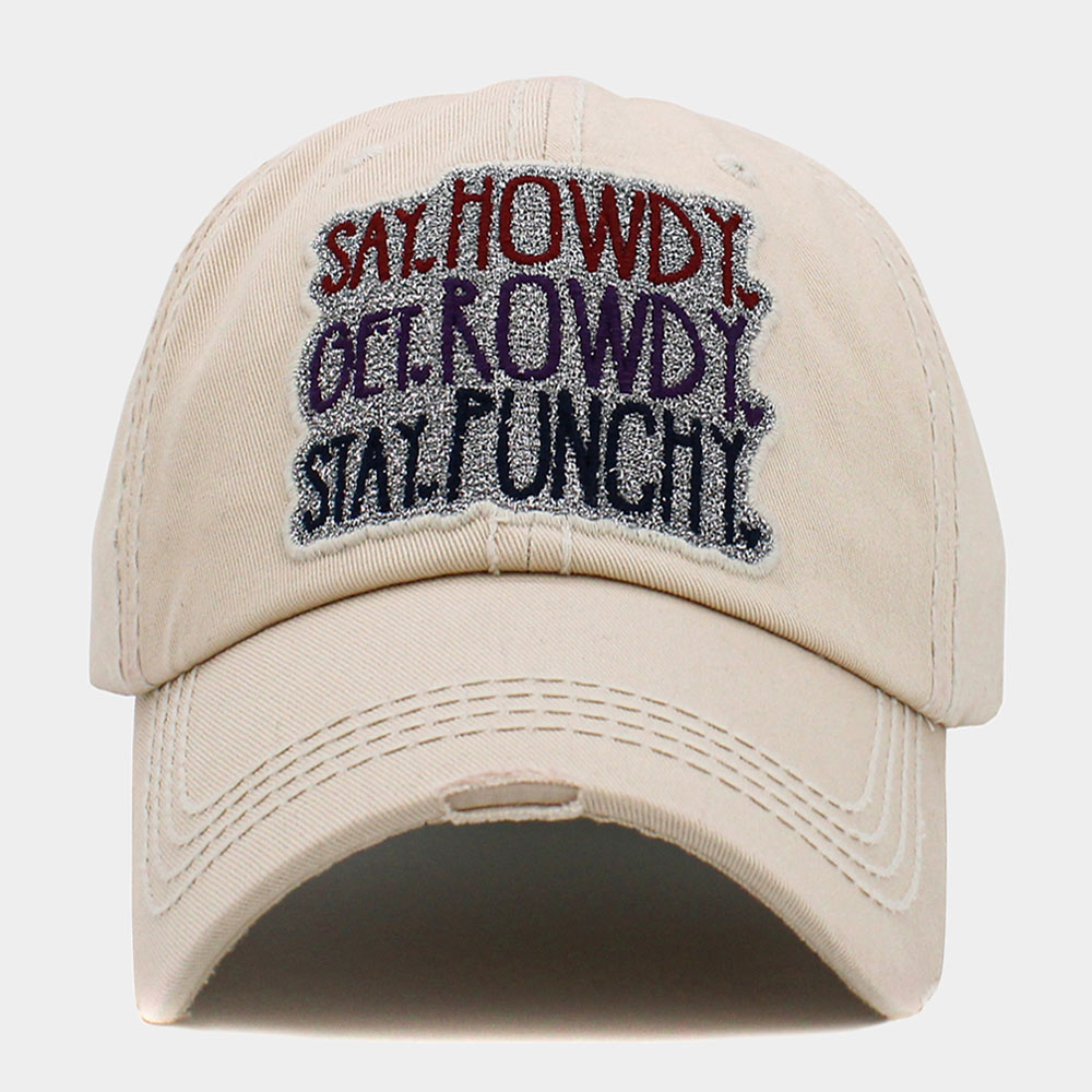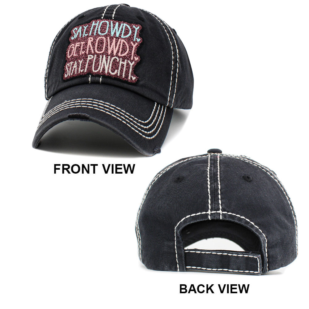 Say Howdy Get Rowdy Stay Punchy Message Vintage Baseball Cap