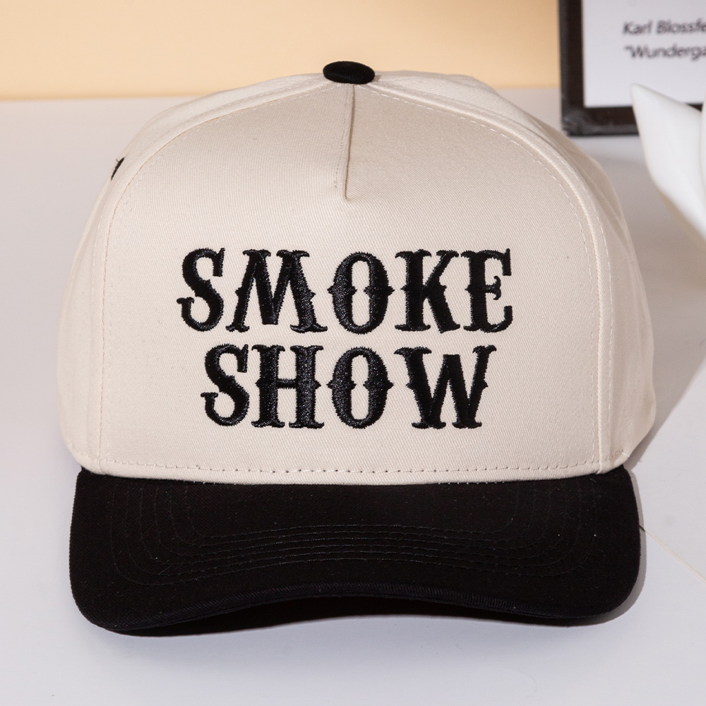 Details • Size : One Size Fits All - Adjustable Strap Makes Fit Comfortable • 5 Panel Canvas Cap : Adjustable Buckle Closure, Relaxed Fit and Pre-Curved Visor • Stand out in style with this playful “SMOKE SHOW” embroidered cap, designed for confident, bold looks. Adjustable and comfortable with a casual fit, this statement hat is perfect for everyday streetwear, parties, or gifting. A fun and trendy accessory to add personality to any outfit.