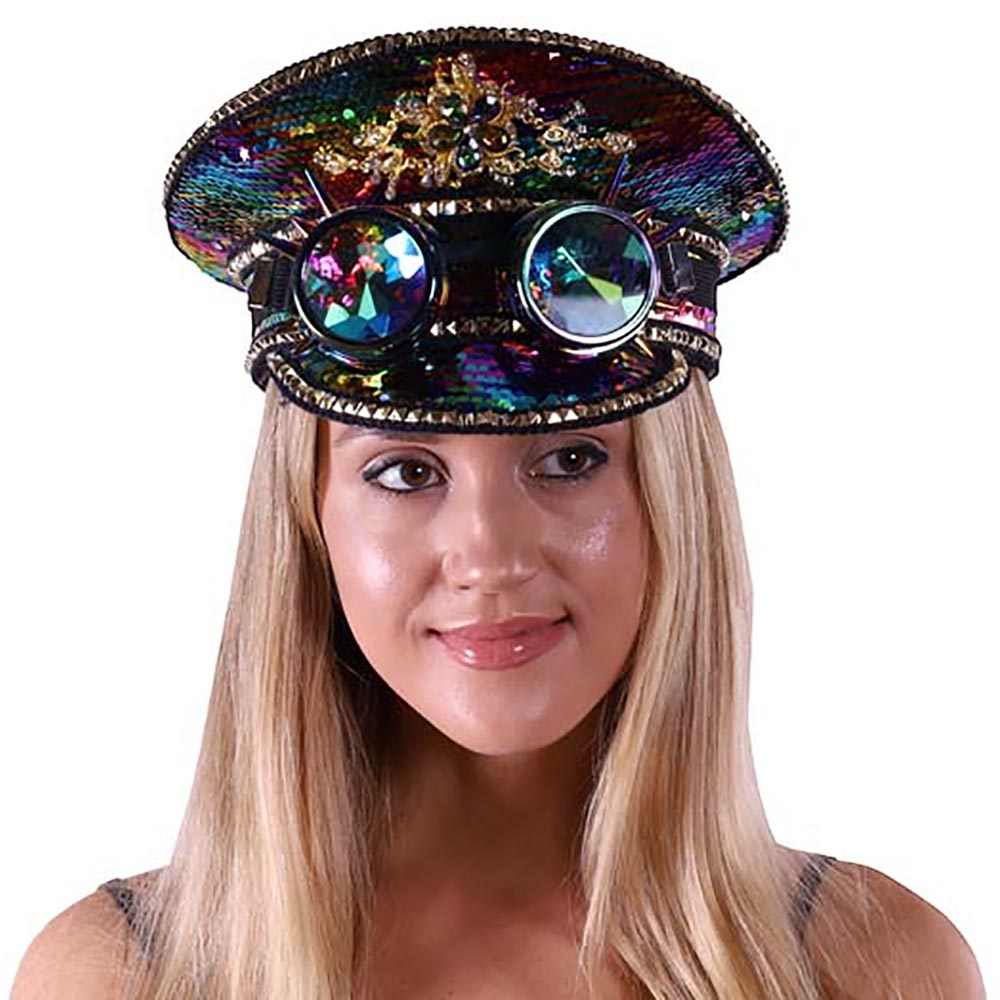 Steampunk Goggle Sequin Captain Rave Hat