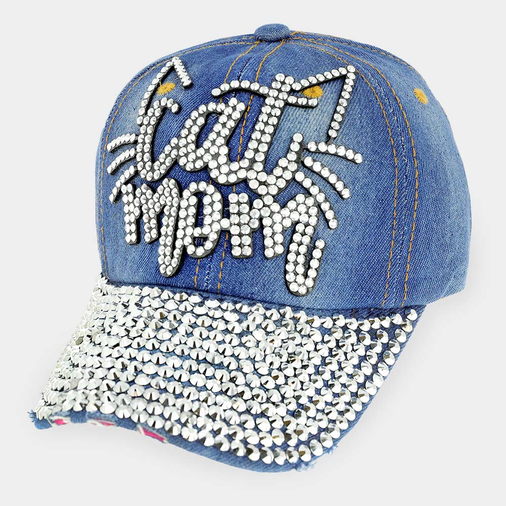 Chain Detail Bling Studded Brim Denim Vintage Baseball Cap