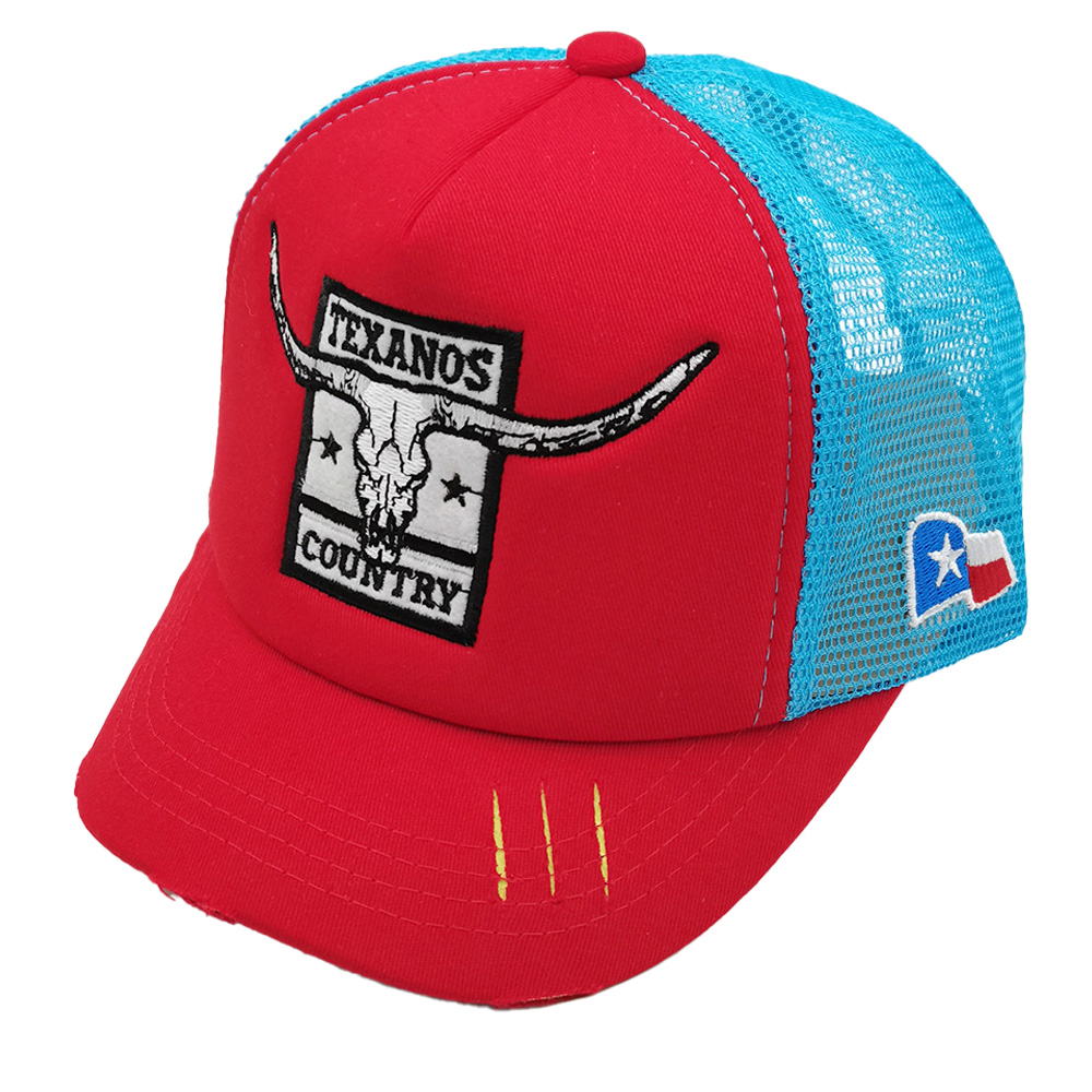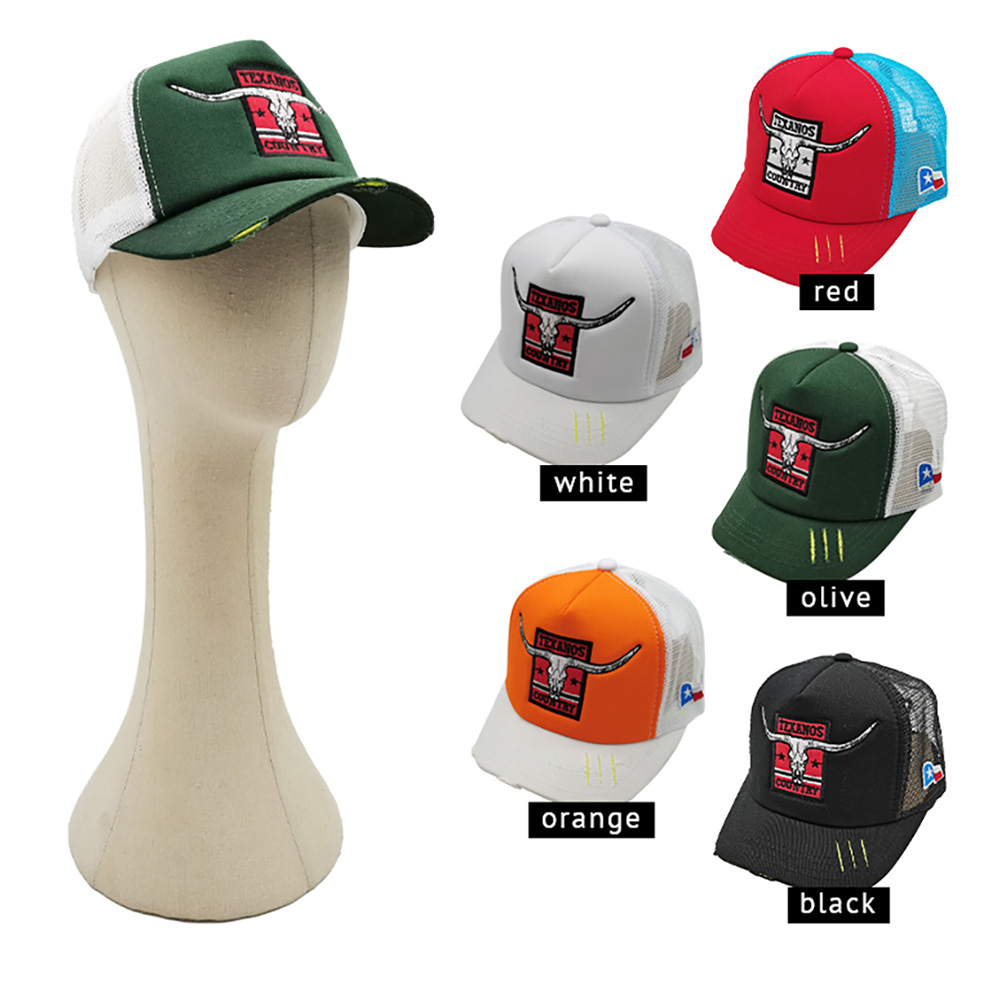 TEXANOS COUNTRY Message Texas Steer Head Embroidered Mesh Back Trucker Hat