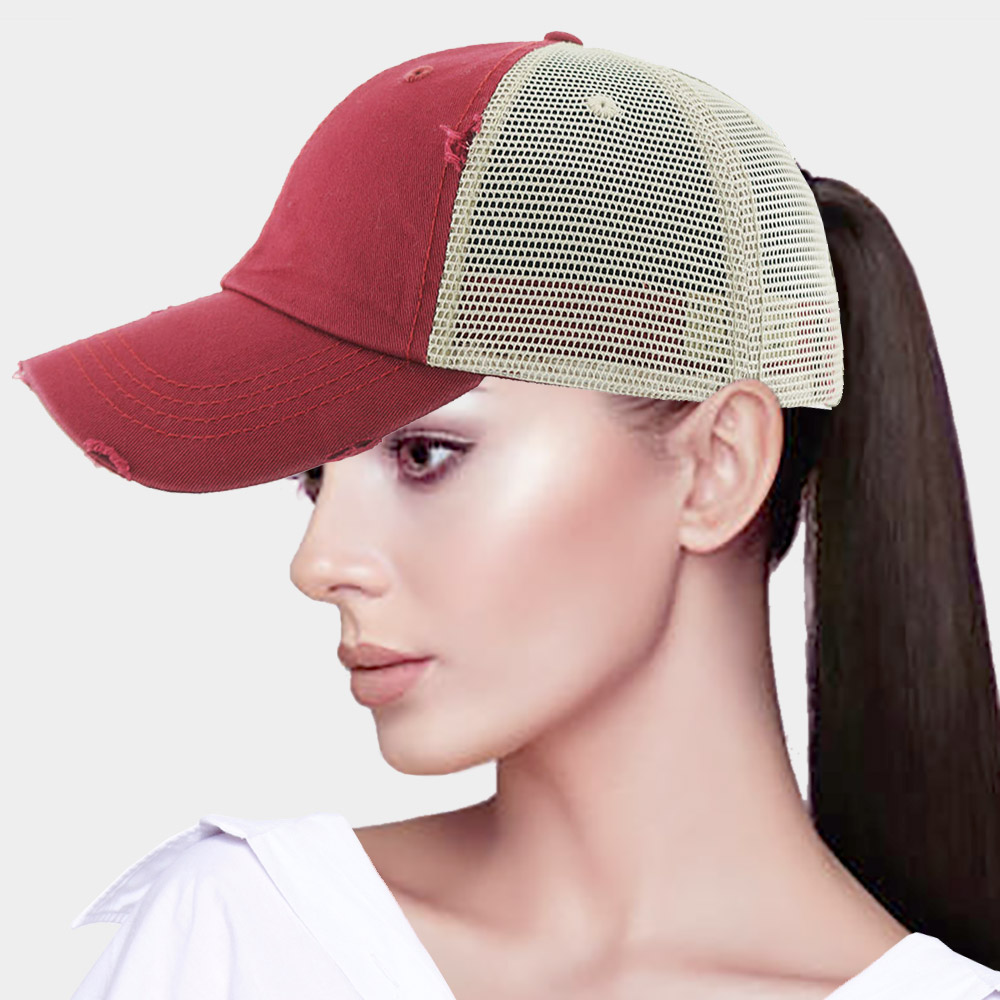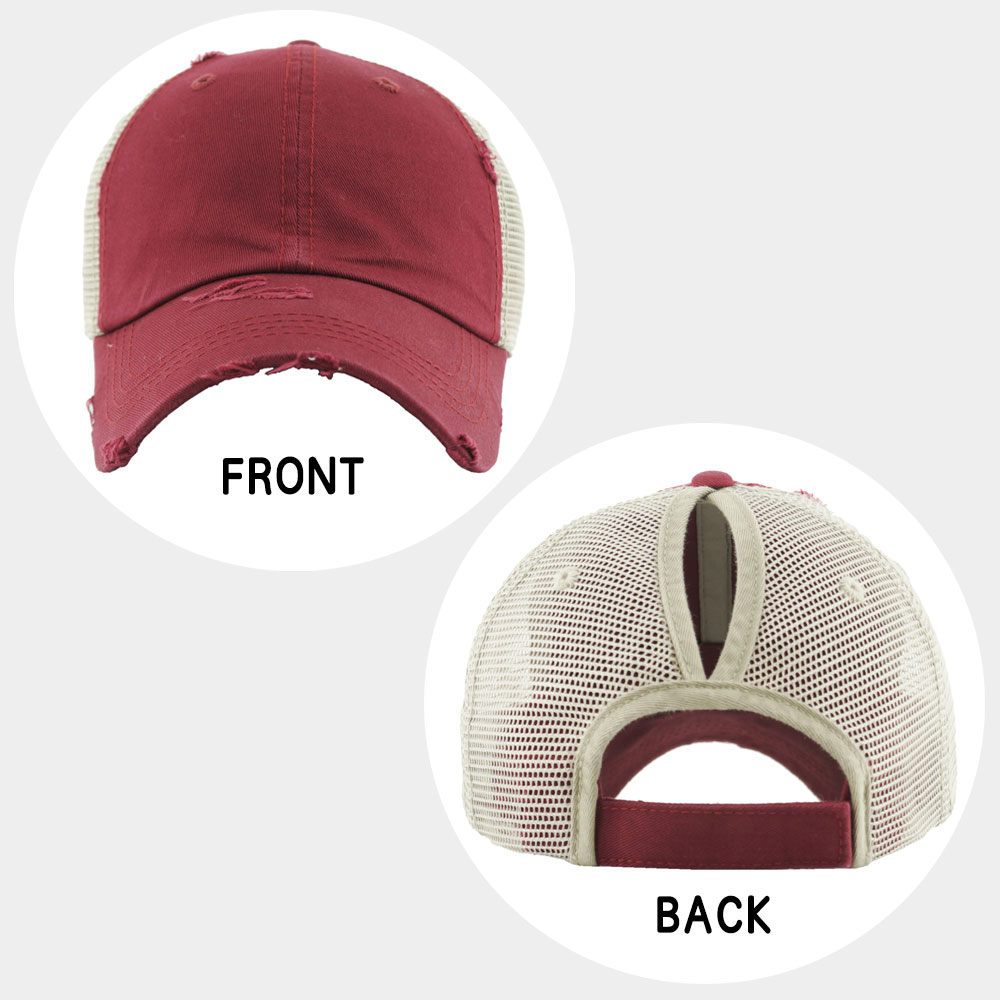 Vintage Denim Mesh Back Ponytail Baseball Cap