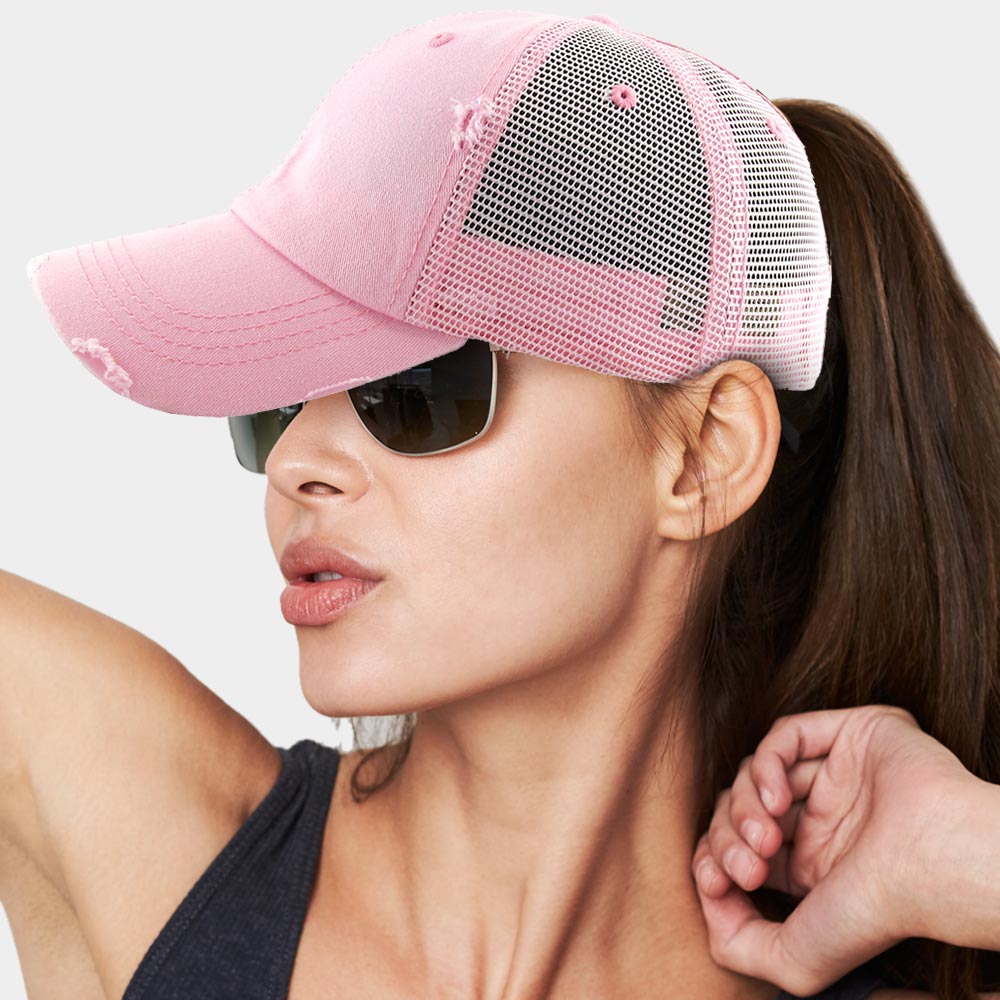 Vintage Denim Mesh Back Ponytail Baseball Cap