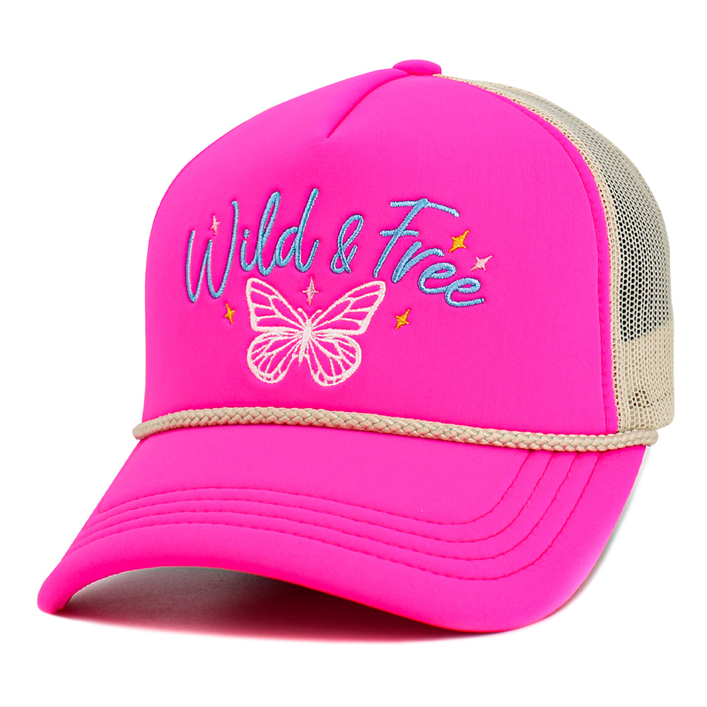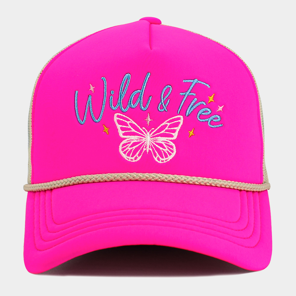 WILD FREE Message Butterfly Embroidered Mesh Back Trucker Hat