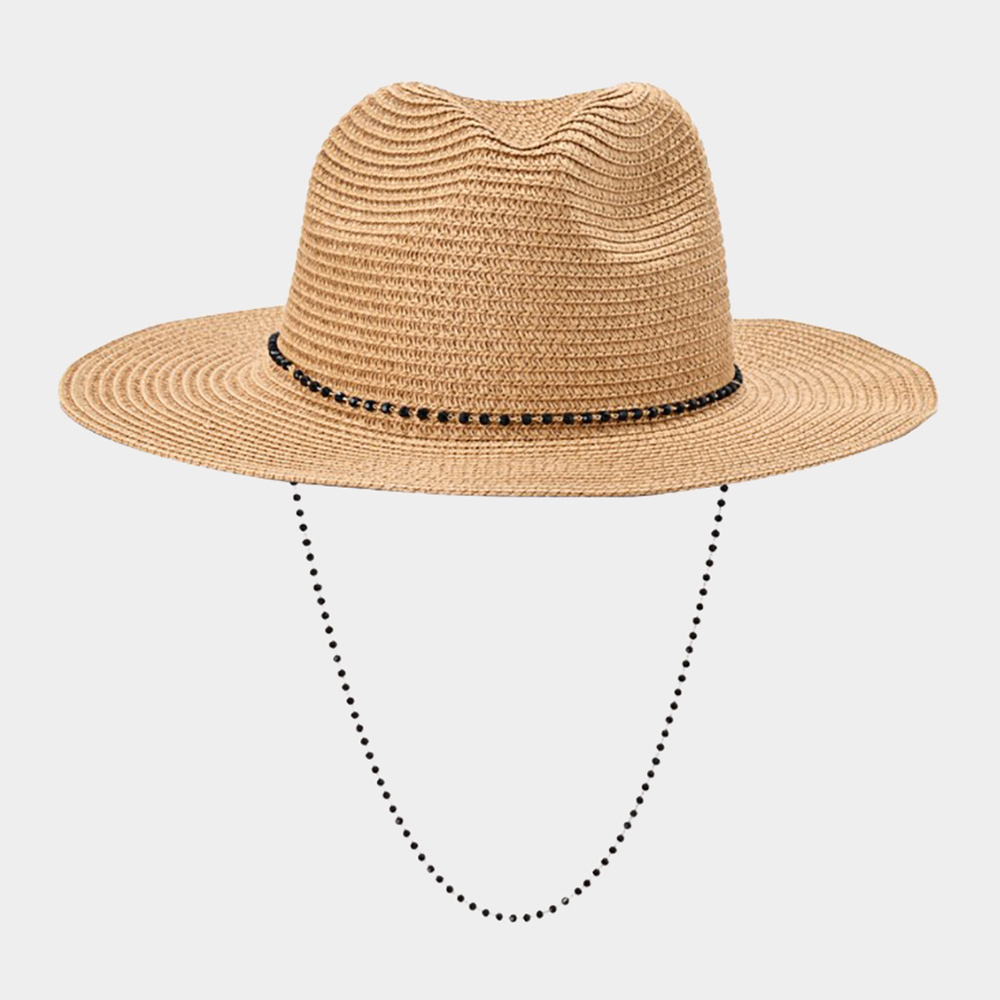 Beaded Chin Tie Straw Sun Hat