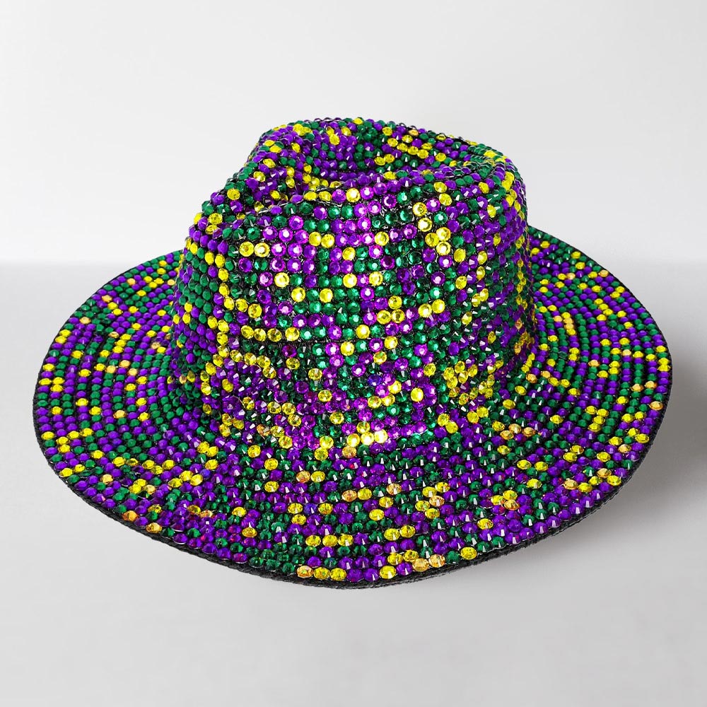 Details • Crown Circumference : 23" • Crown Height : 4.5" • Brim Height : 3" • Shine bright with this beaded sequin wide brim hat featuring bold, colorful detailing for a fun statement look. Perfect for festivals, parties, parades, or themed events, this eye-catching accessory adds sparkle, energy, and playful flair to any outfit.