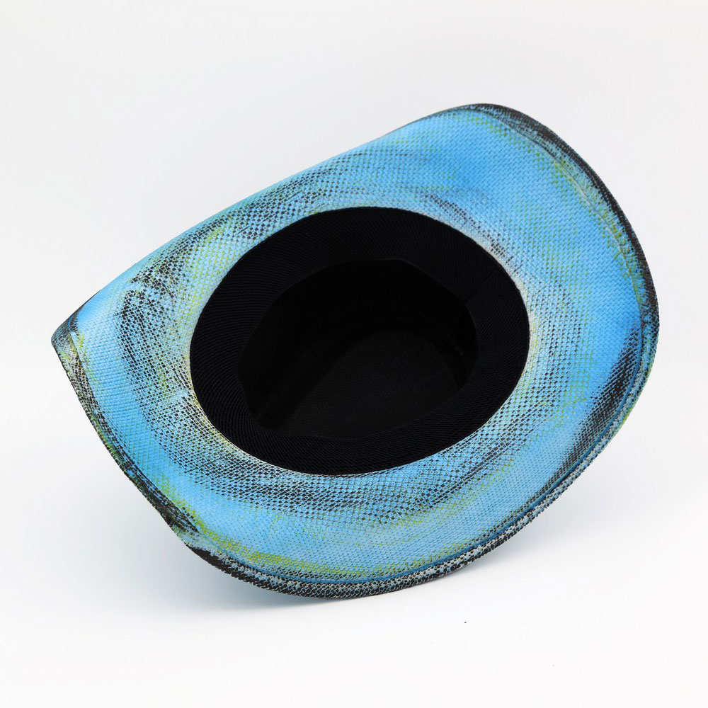 • Stylish western cowboy hat featuring a structured crown, curved brim, and decorative concho band with engraved scroll detailing. Designed for western fashion, festivals, rodeo outfits, and boutique displays, this statement hat delivers bold character and timeless cowboy appeal.