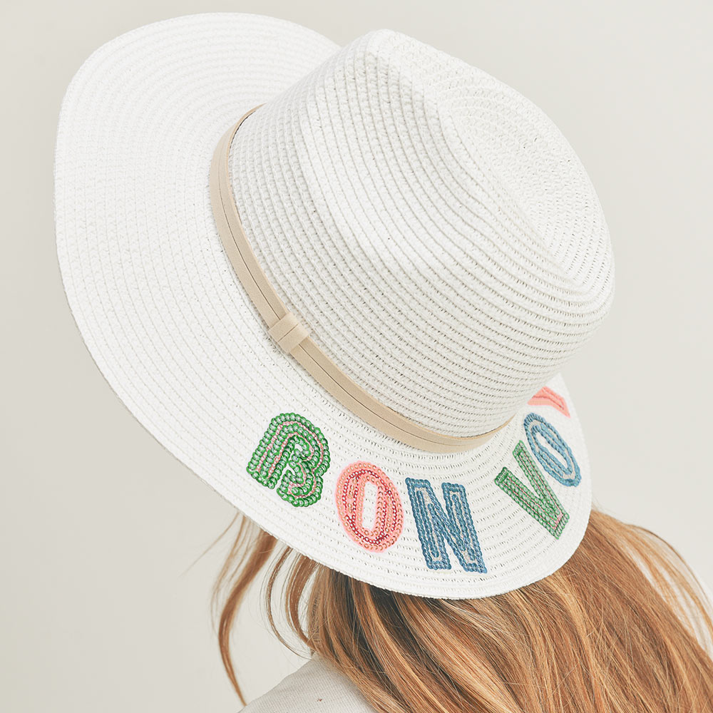 Bon Voyage Sequin Message Straw Panama Sun Hat