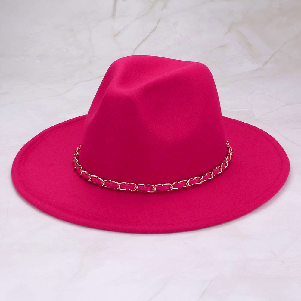 Faux Leather Braided Chain Band Pointed Fedora Hat