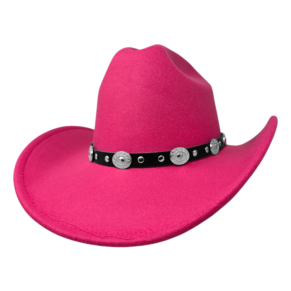 • Classic western cowboy hat featuring a wide brim and a stylish decorative concho band. Perfect for country events, rodeos, festivals, or casual wear, this versatile hat combines traditional charm with bold western flair.