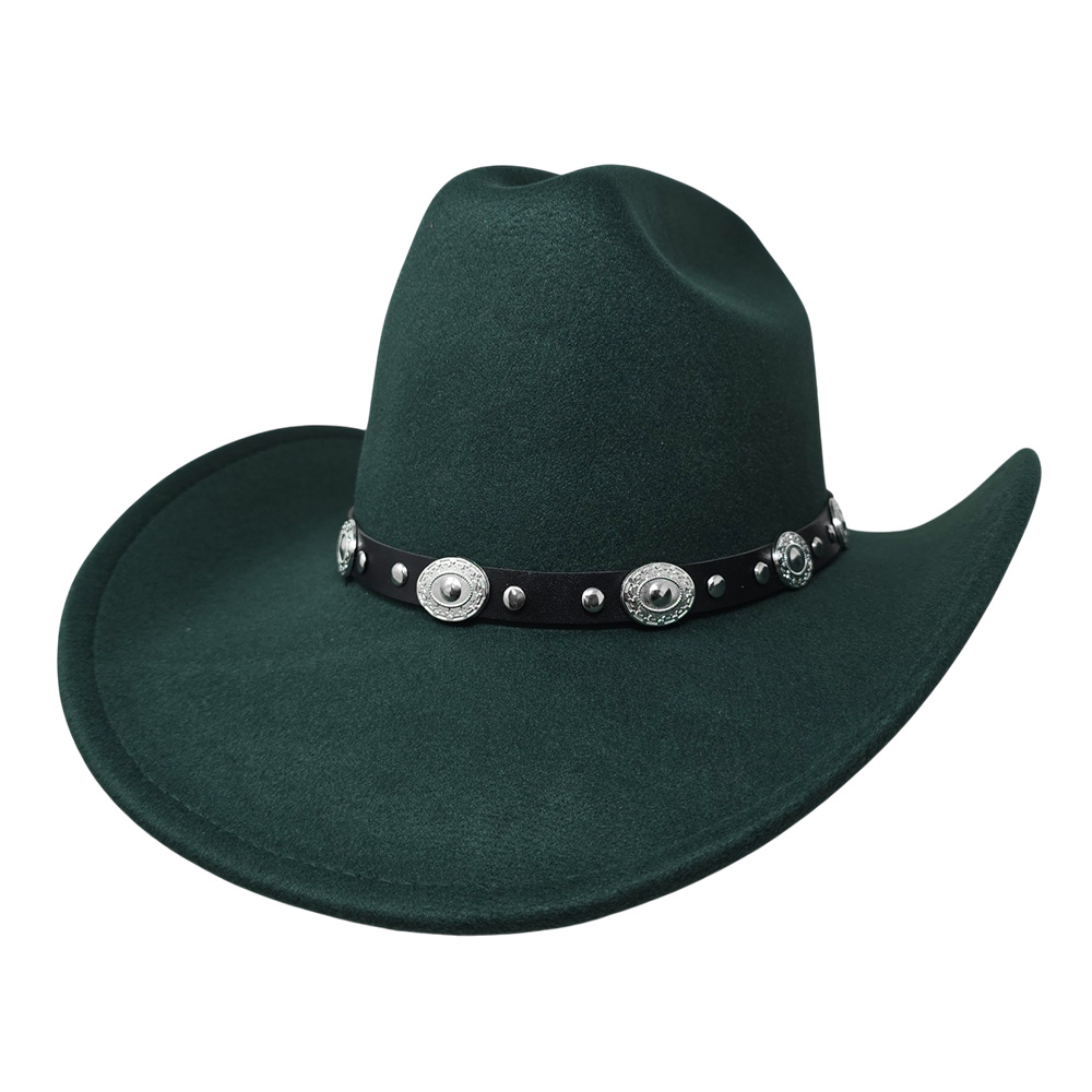 • Classic western cowboy hat featuring a wide brim and a stylish decorative concho band. Perfect for country events, rodeos, festivals, or casual wear, this versatile hat combines traditional charm with bold western flair.