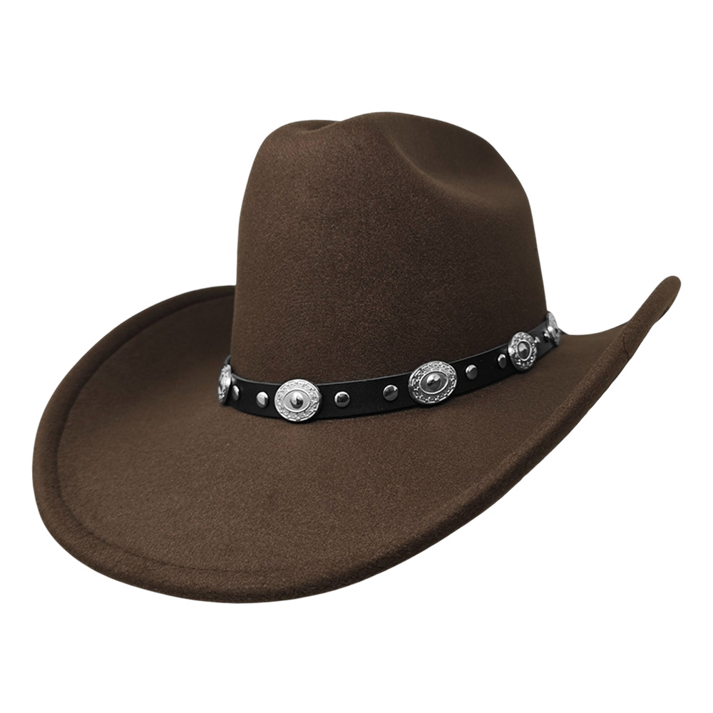 • Classic western cowboy hat featuring a wide brim and a stylish decorative concho band. Perfect for country events, rodeos, festivals, or casual wear, this versatile hat combines traditional charm with bold western flair.