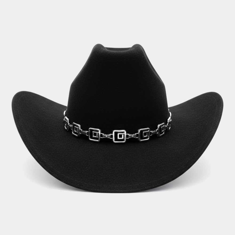 Geometric Metal Chain Accent Western Cowboy Fedora Hat