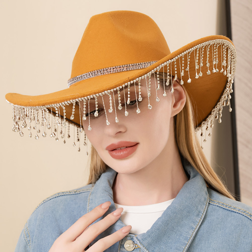Rhinestone Embellished Band Pointed Rhinestone Stone Paved Fringe Around Cowboy Western Hat