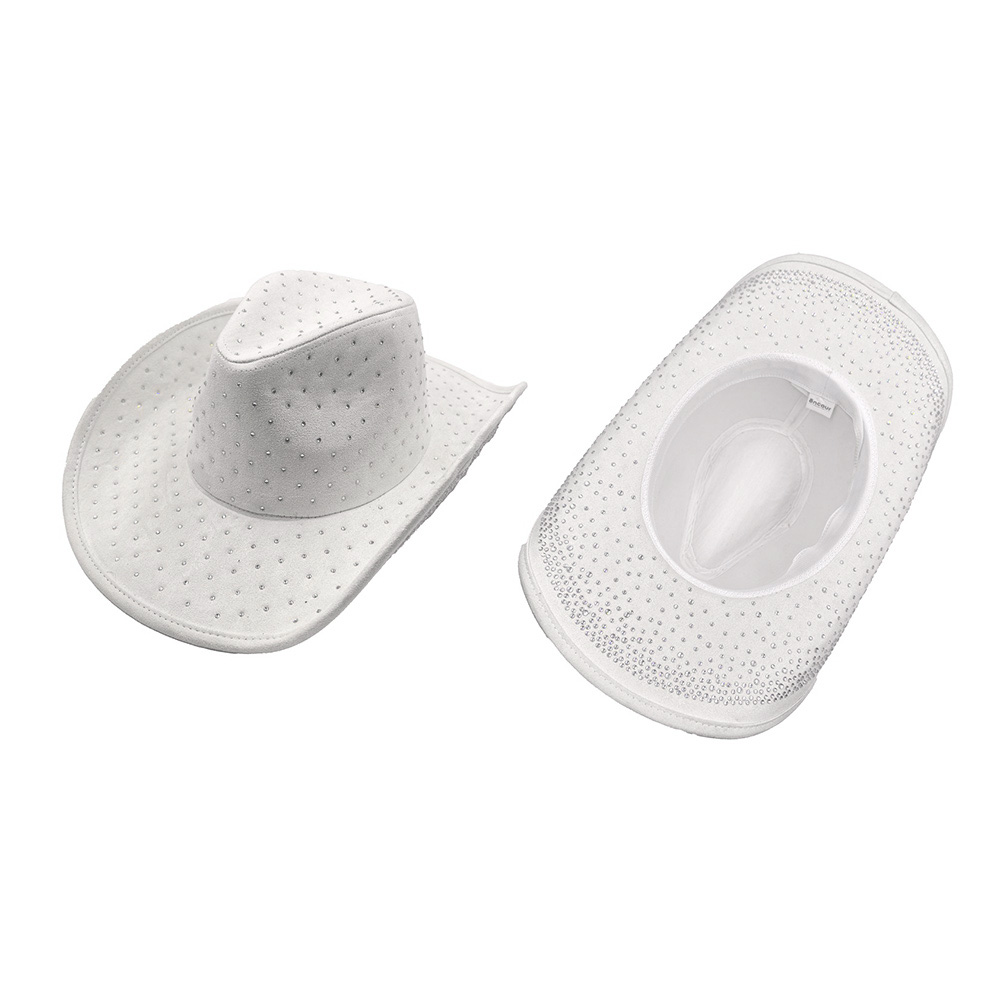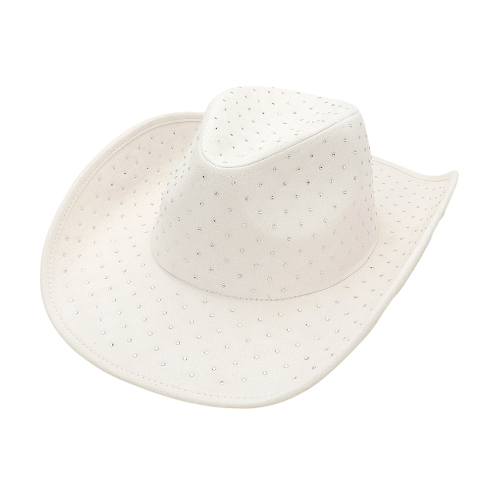 Details • Crown Circumference: 23" • Crown Height : 4.5" • Brim Width : 3.5" • Material : 100% Polyester • Add bold flair to your western look with this cowboy hat adorned in all-over rhinestones. Its classic silhouette is elevated with shimmering accents, making it perfect for concerts, festivals, or standout street style.