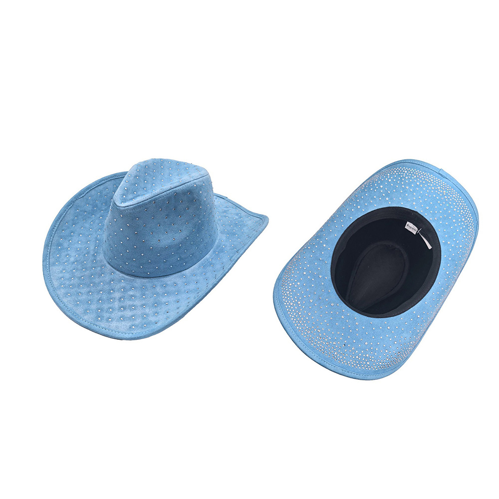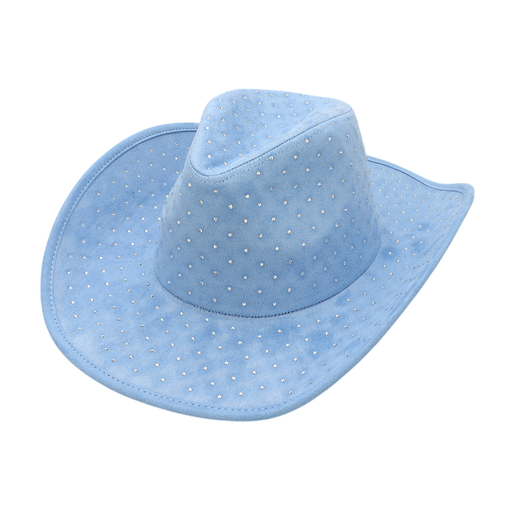 Rhinestone Embellished Faux Suede Western Cowboy Fedora Hat