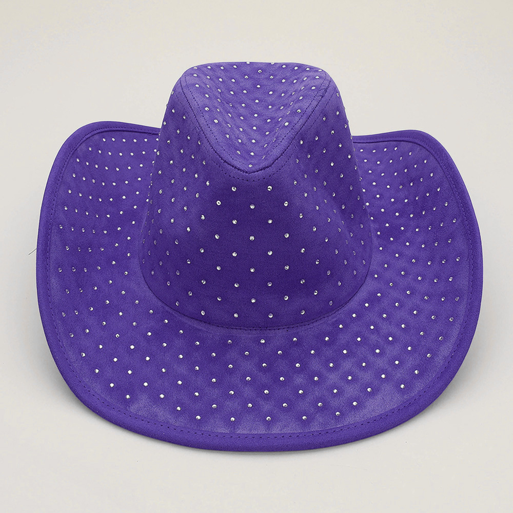 • Add bold flair to your western look with this cowboy hat adorned in all-over rhinestones. Its classic silhouette is elevated with shimmering accents, making it perfect for concerts, festivals, or standout street style.