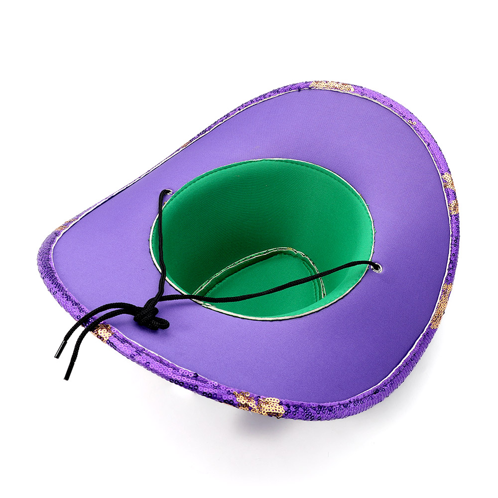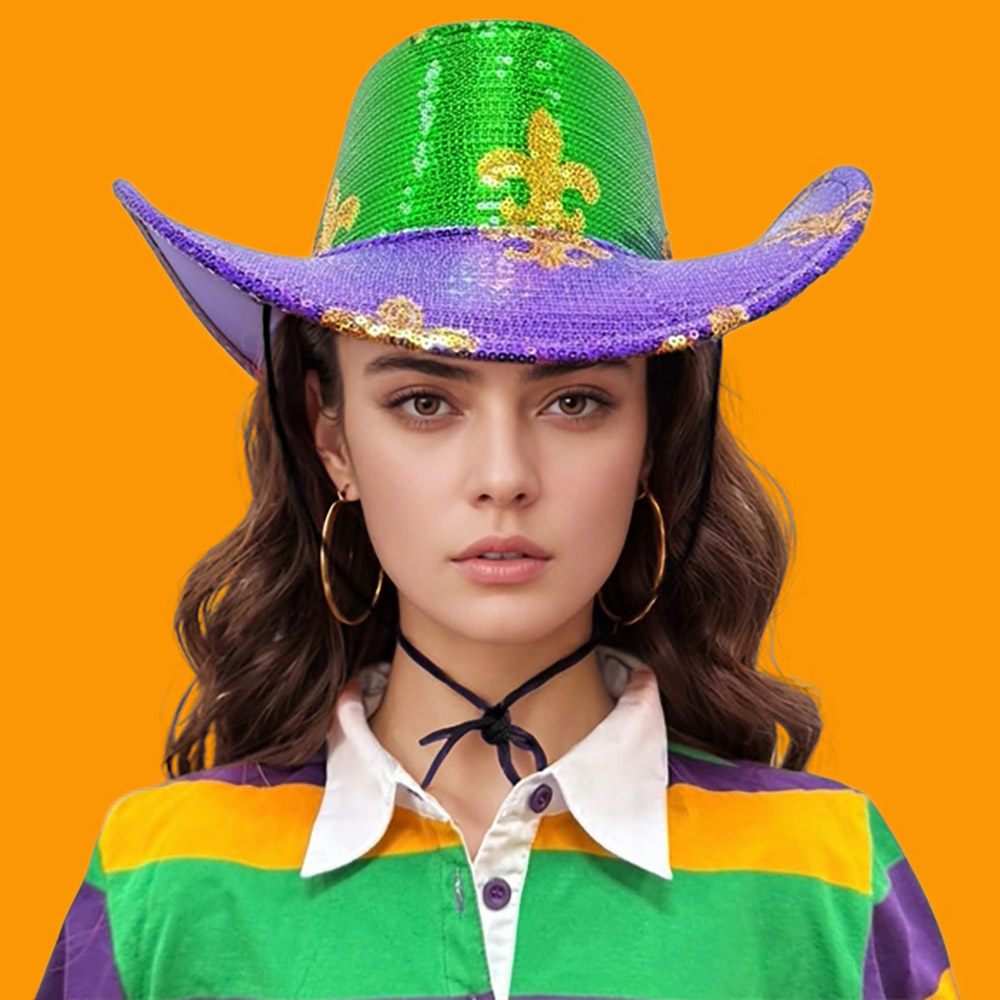 Sequin Fleur de Lis Patterned Mardi Gras Fedora Hat