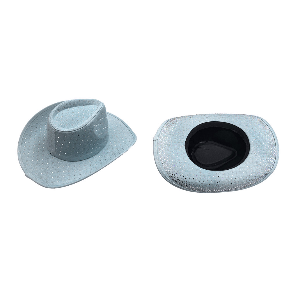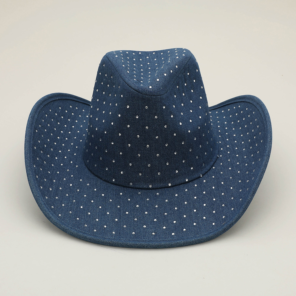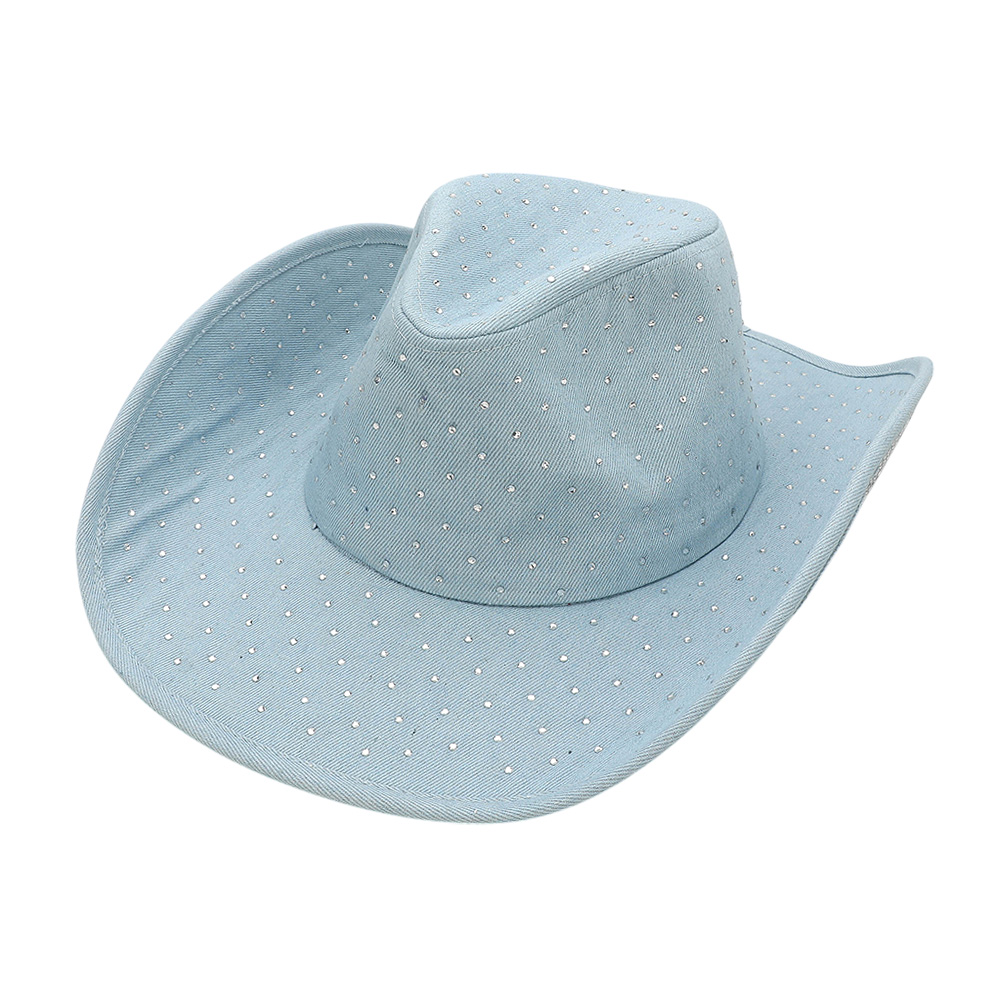 Sparkling Rhinestone Embellished Denim Western Cowboy Fedora Hat