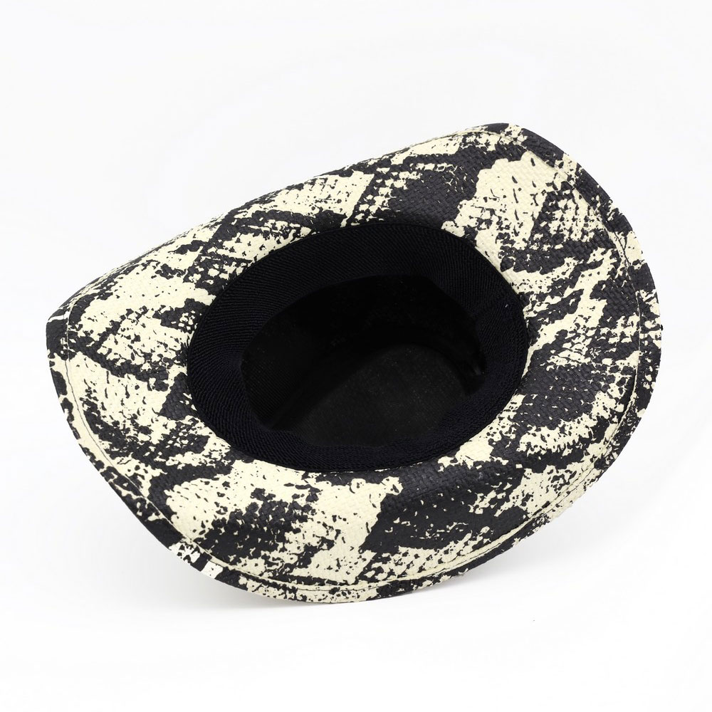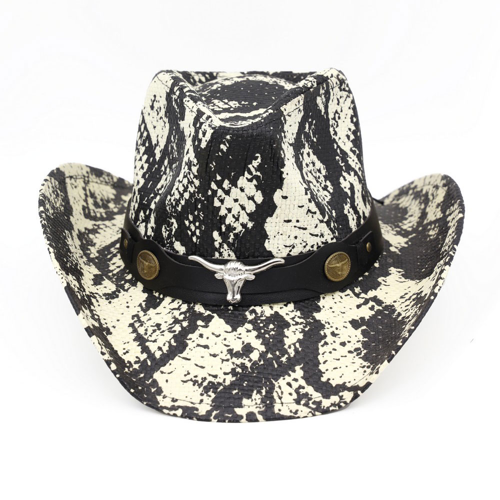 Details • Size : One Size • Material : 100% Paper • Classic western cowboy hat designed with a structured crown and curved brim, finished with a bold bull skull accent for a rugged, statement look. Ideal for western fashion, festivals, rodeo styling, and boutique collections seeking iconic cowboy appeal with modern attitude.