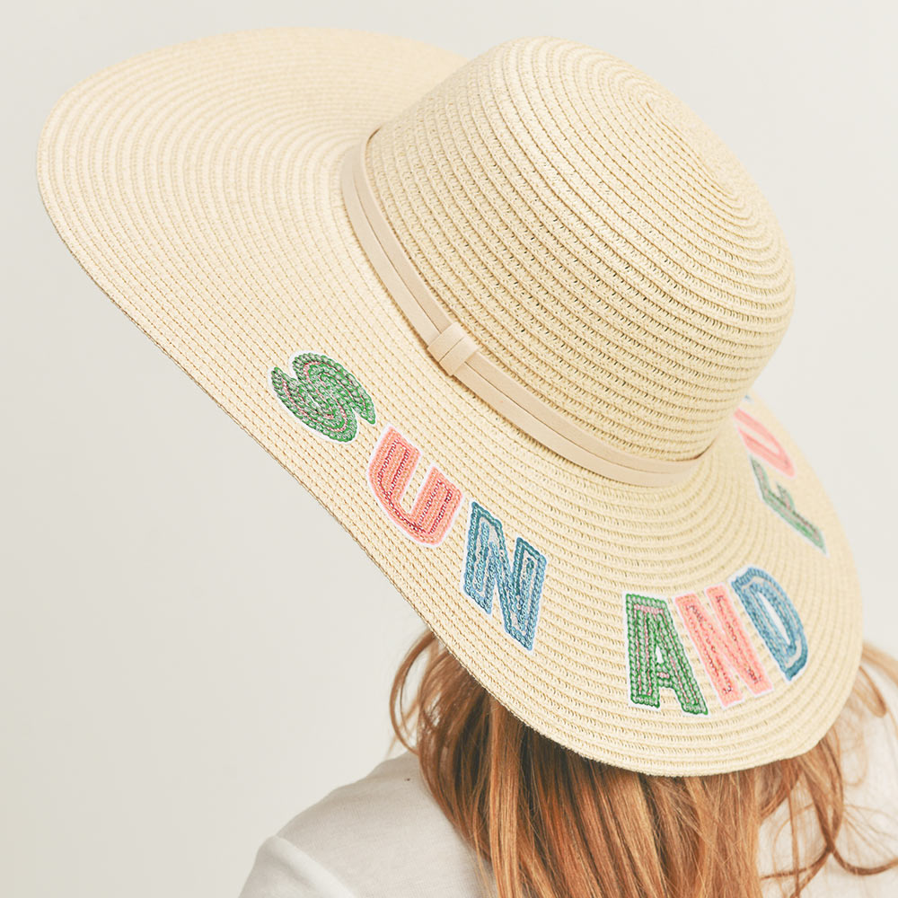 Sun And Fun Sequin Message Straw Panama Sun Hat