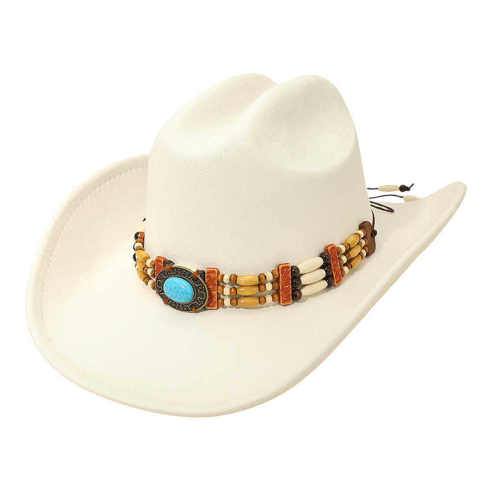 Details • Crown Circumference : 23" • Crown Height : 4.75" • Brim Height : 3.75" • Material : 100% Polyester • Western cowboy hat featuring a handcrafted beaded band with a bold concho centerpiece for authentic style. Perfect for rodeos, concerts, festivals, and casual outings, this durable hat blends traditional western charm with unique detail, making it a standout accessory for cowboy fashion lovers.