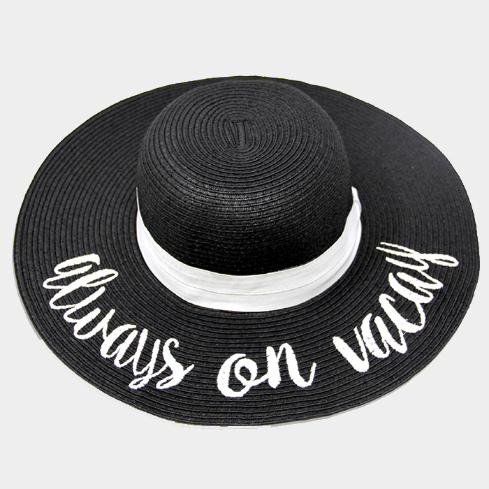 'Always on Vacay' Embroidery Straw Floppy Sun Hat