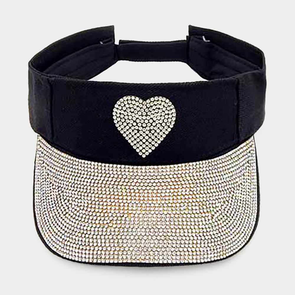CZ Stone Paved Heart Pendant Accent Quatrefoil Link Chain Rhinestone Paved Necklace