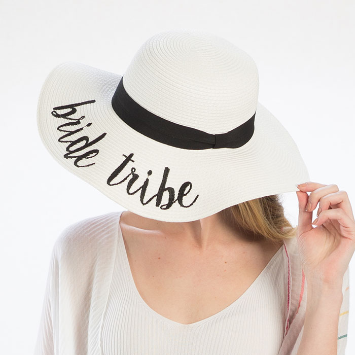 'Bride Tribe' Embroidery Straw Floppy Sun Hat
