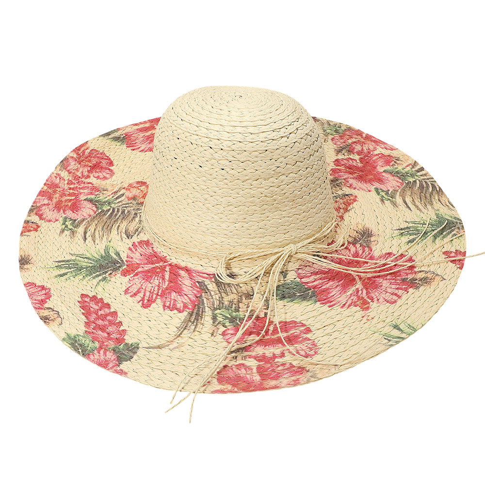 • Chic wide brim paper straw hat with a vibrant floral print and twine band detail. Lightweight and breathable - ideal for sunny vacations, beach days, and garden outings.