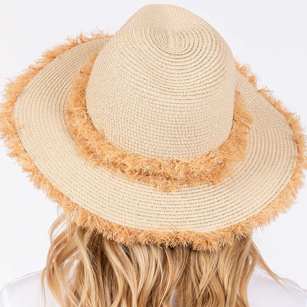 Frayed Band and Trip Straw Sun Hat