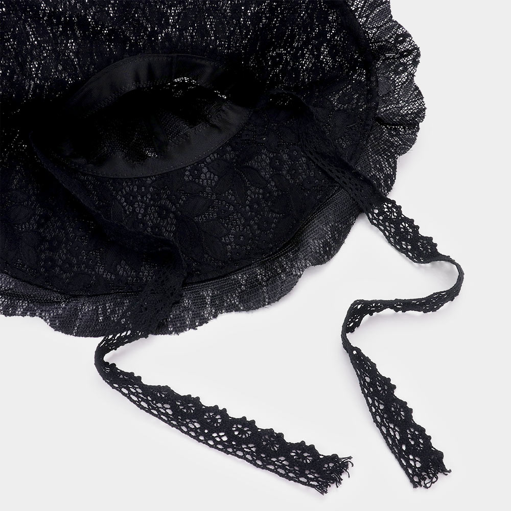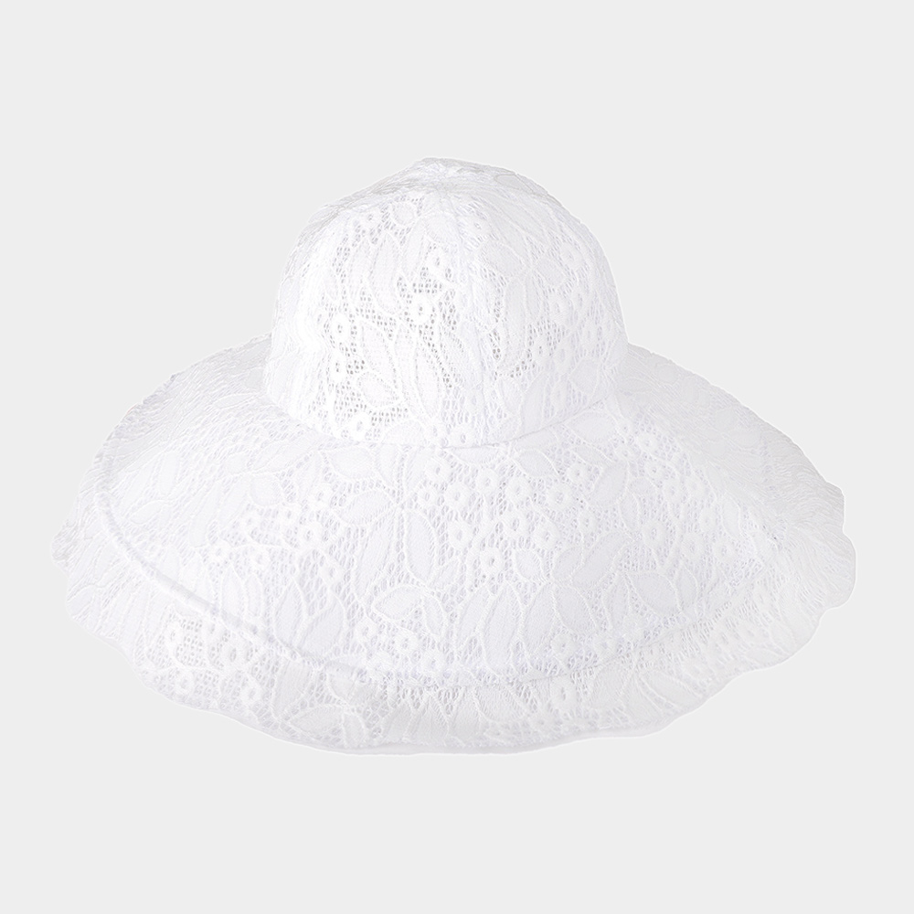 Leaf Detailed Chin Tie Lace Sun Hat